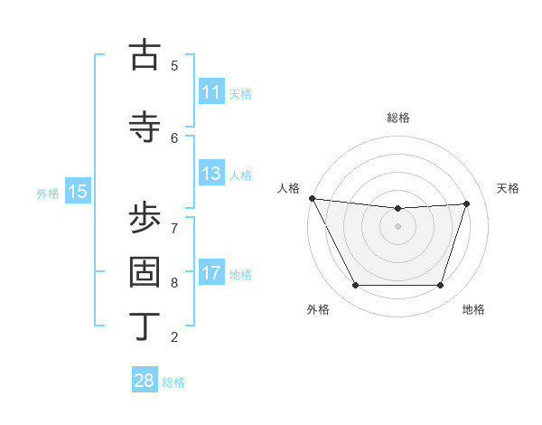 古寺 歩固丁さんを姓名の画数から五運を鑑定