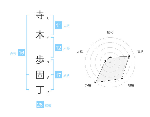 寺本 歩固丁さんを姓名の画数から五運を鑑定