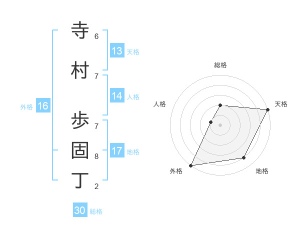 寺村 歩固丁さんを姓名の画数から五運を鑑定