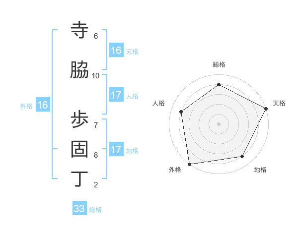 寺脇 歩固丁さんの天格は16画の5点!