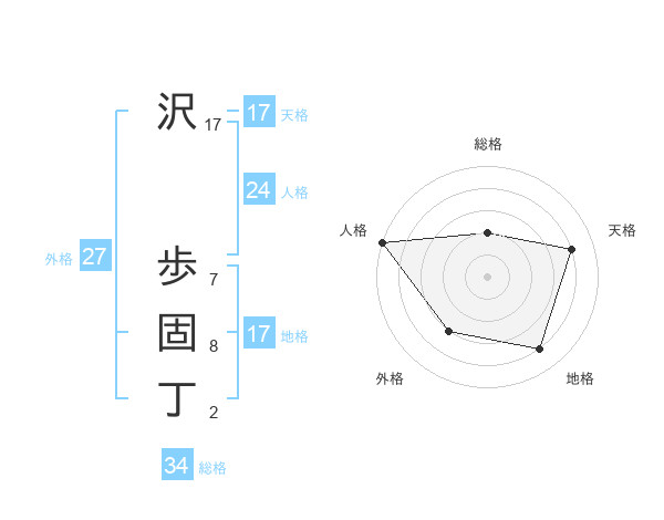 沢 歩固丁さんを姓名の画数から五運を鑑定