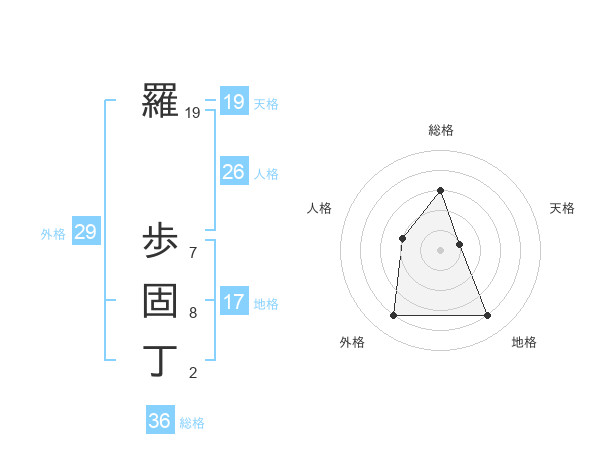 羅 歩固丁さんを姓名の画数から五運を鑑定