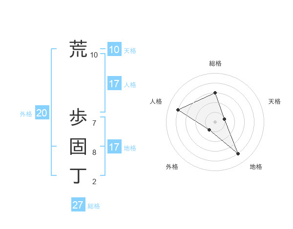 荒 歩固丁さんの地格は17画の4点!