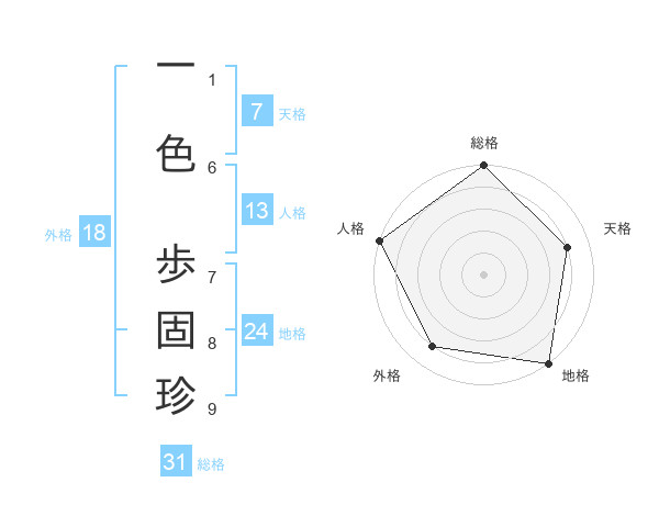一色 歩固珍さんを姓名の画数から五運を鑑定