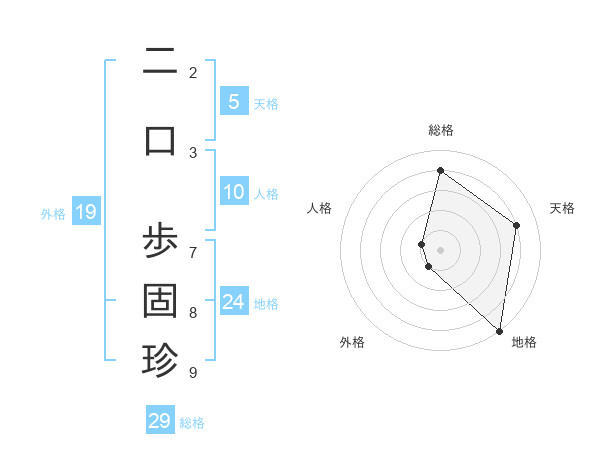 二口 歩固珍さんを姓名の画数から五運を鑑定