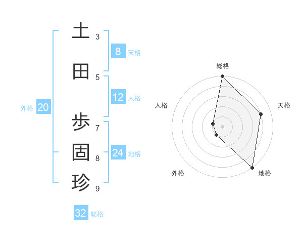 土田 歩固珍さんの総格は32画の5点!