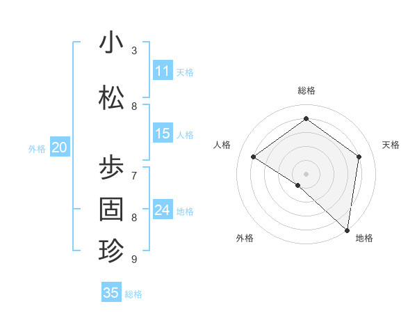 小松 歩固珍さんを姓名の画数から五運を鑑定