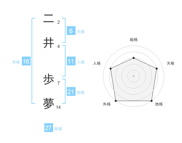 二井 歩夢さんを姓名の画数から五運を鑑定