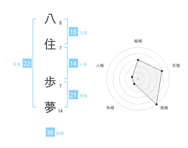 八住 歩夢さんを姓名の画数から五運を鑑定
