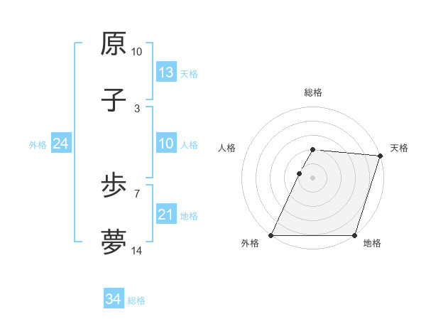 原子 歩夢さんの総格は34画の2点!