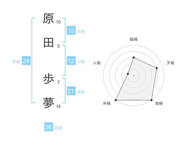 原田 歩夢さんを姓名の画数から五運を鑑定