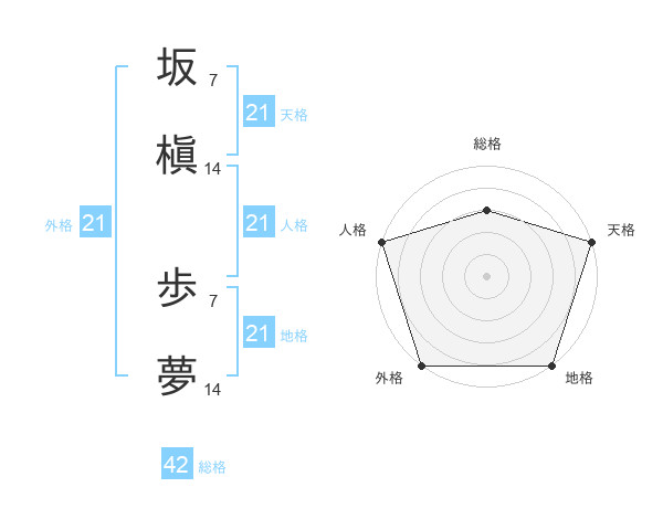坂槇 歩夢さんを姓名の画数から五運を鑑定