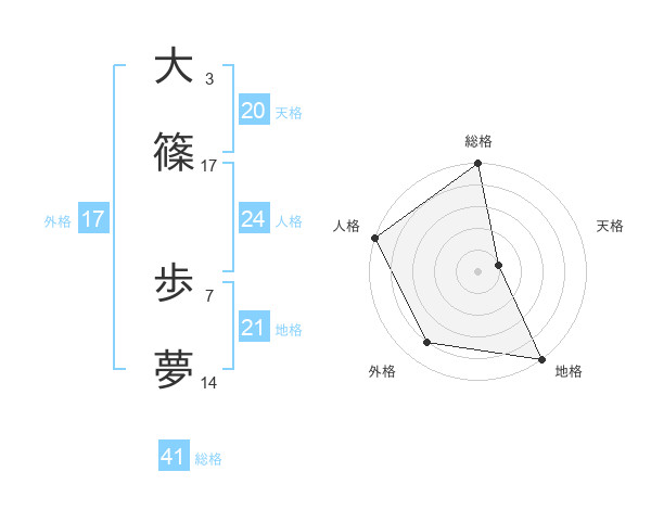 大篠 歩夢さんを姓名の画数から五運を鑑定