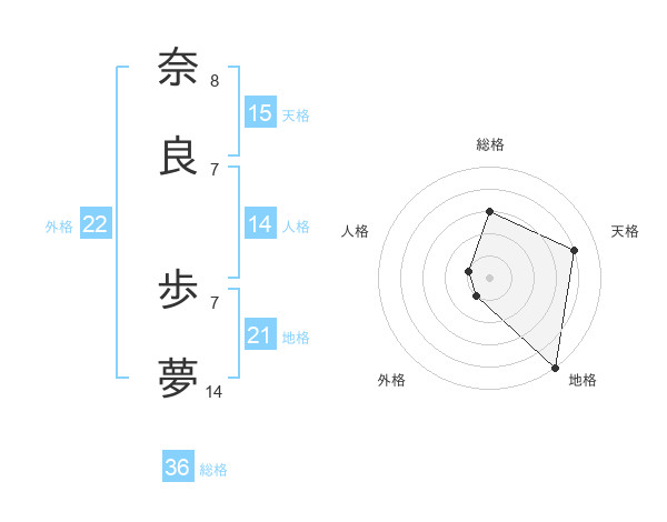 奈良 歩夢さんの天格は15画の4点!