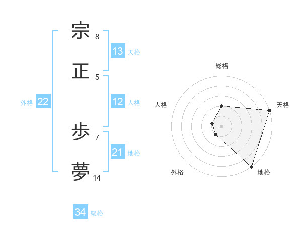 宗正 歩夢さんを姓名の画数から五運を鑑定