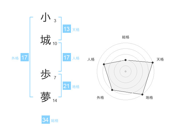 小城 歩夢さんを姓名の画数から五運を鑑定