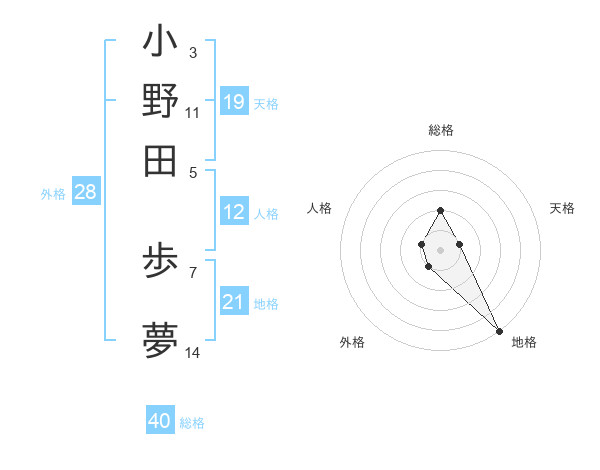 小野田 歩夢さんを姓名の画数から五運を鑑定
