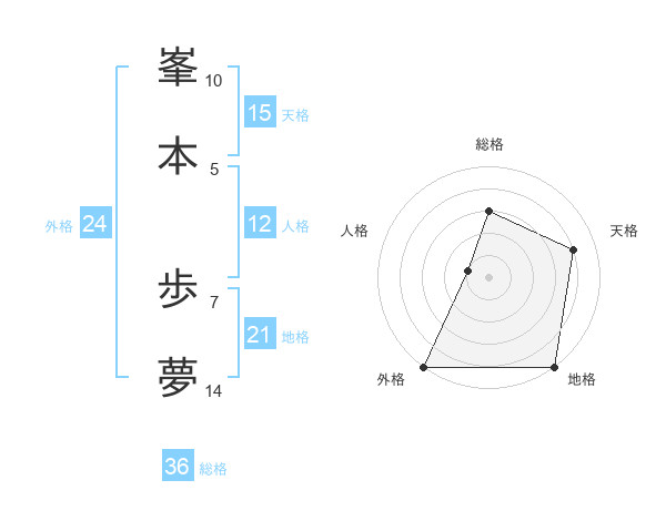 峯本 歩夢さんの地格は21画の5点!