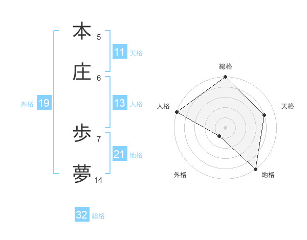 本庄 歩夢さんの総格は32画の5点!