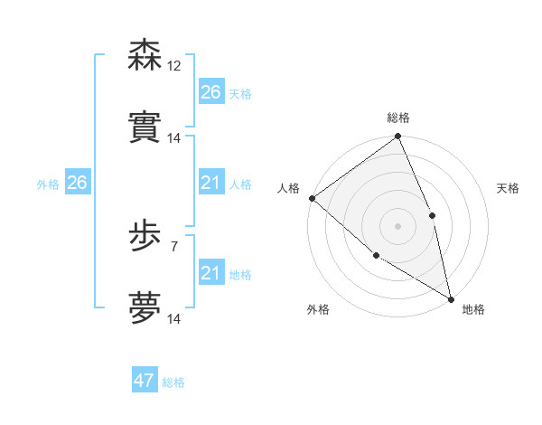 森實 歩夢さんの総格は47画の5点!