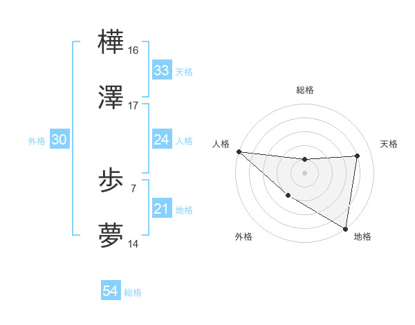 樺澤 歩夢さんの総格は54画の1点!