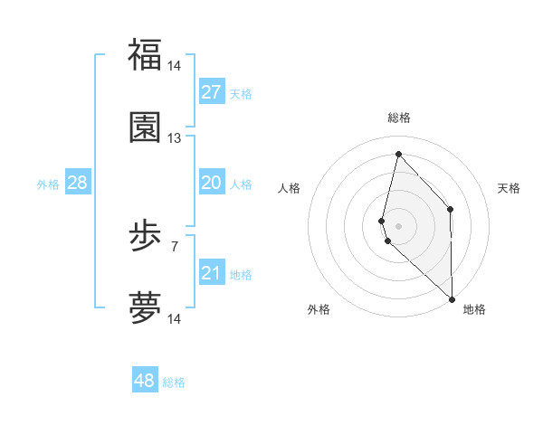 福園 歩夢さんの総格は48画の4点!