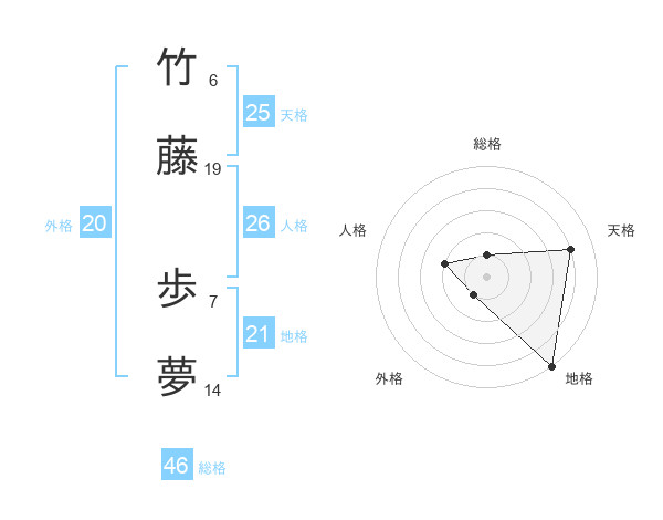 竹藤 歩夢さんを姓名の画数から五運を鑑定