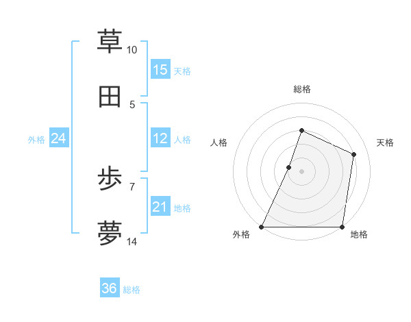 草田 歩夢さんの地格は21画の5点!