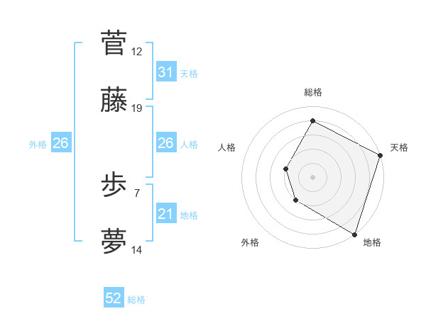 菅藤 歩夢さんの総格は52画の4点!