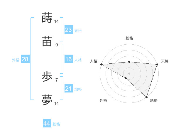 蒔苗 歩夢さんの総格は44画の2点!
