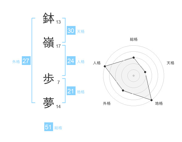 鉢嶺 歩夢さんを姓名の画数から五運を鑑定