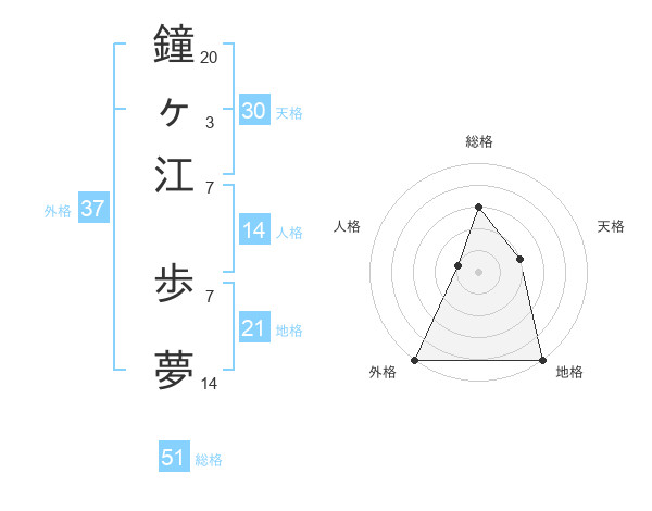 鐘ヶ江 歩夢さんの総格は51画の3点!
