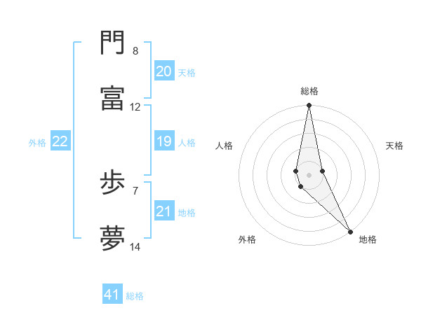 門富 歩夢さんの外格は22画の1点!