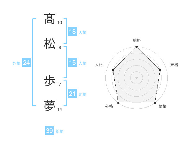 髙松 歩夢さんの総格は39画の5点!