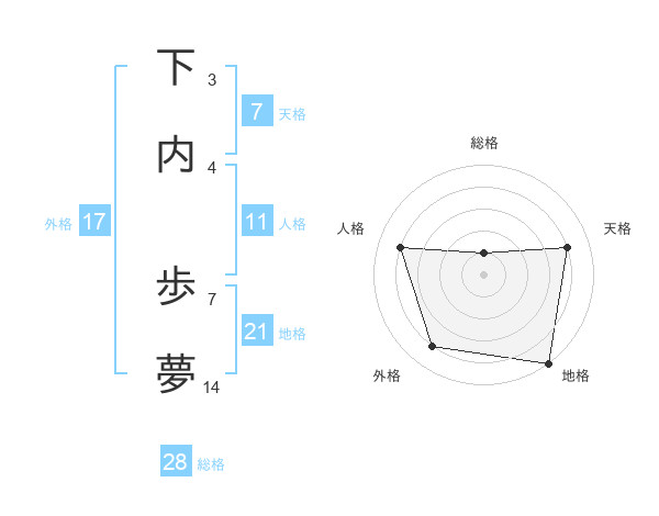 下内 歩夢さんの地格は21画の5点!