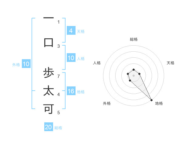 一口 歩太可さんを姓名の画数から五運を鑑定