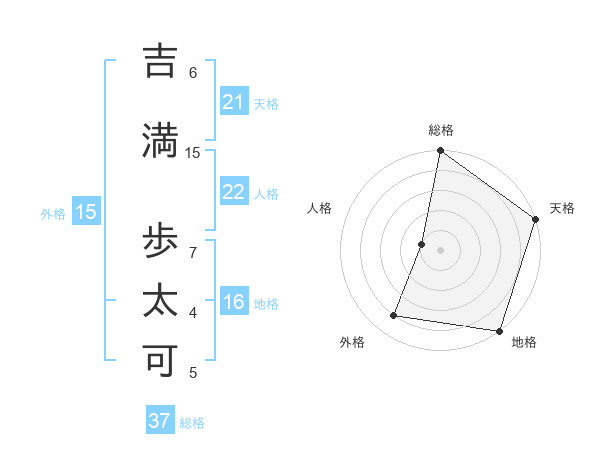 吉満 歩太可さんを姓名の画数から五運を鑑定