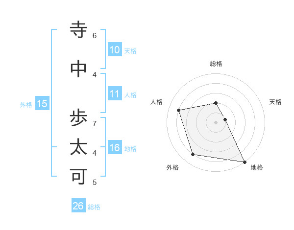 寺中 歩太可さんの総格は26画の2点!