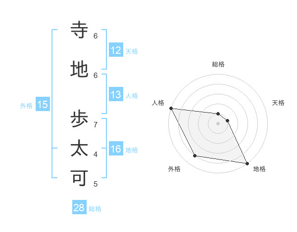 寺地 歩太可さんの天格は12画の1点!