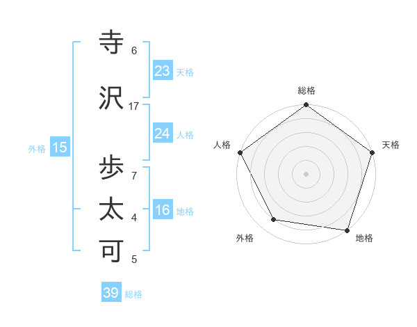 寺沢 歩太可さんの天格は23画の5点!
