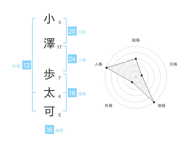 小澤 歩太可さんを姓名の画数から五運を鑑定