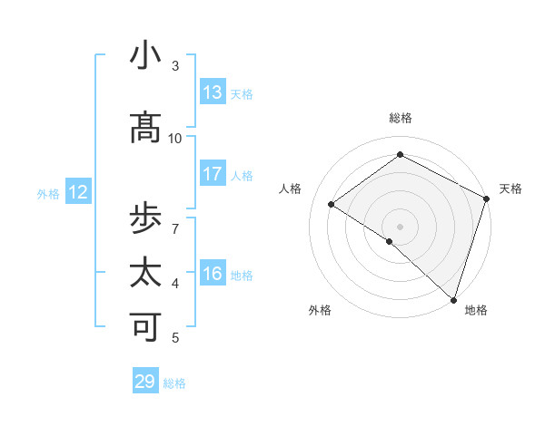 小髙 歩太可さんの総格は29画の4点!