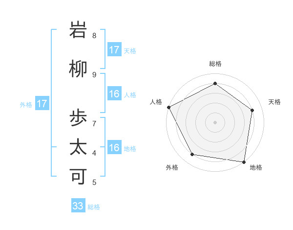 岩柳 歩太可さんの天格は17画の4点!