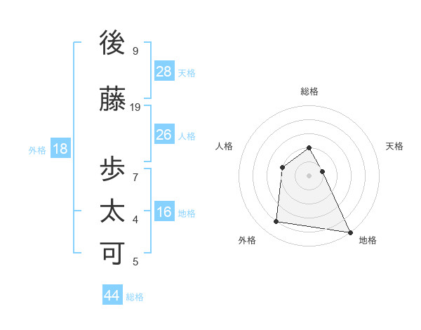 後藤 歩太可さんを姓名の画数から五運を鑑定