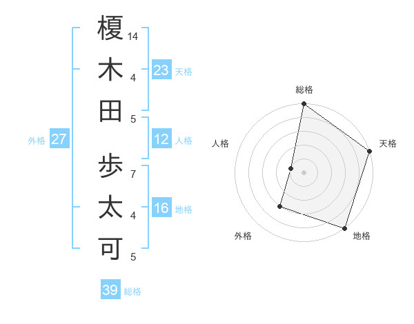 榎木田 歩太可さんを姓名の画数から五運を鑑定