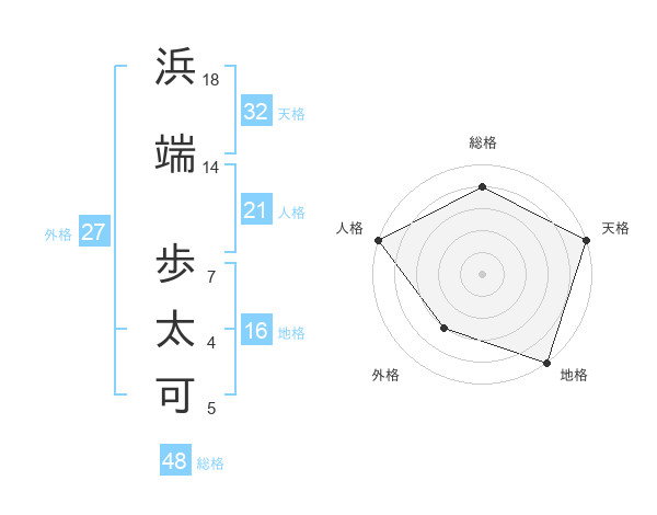 浜端 歩太可さんの天格は32画の5点!