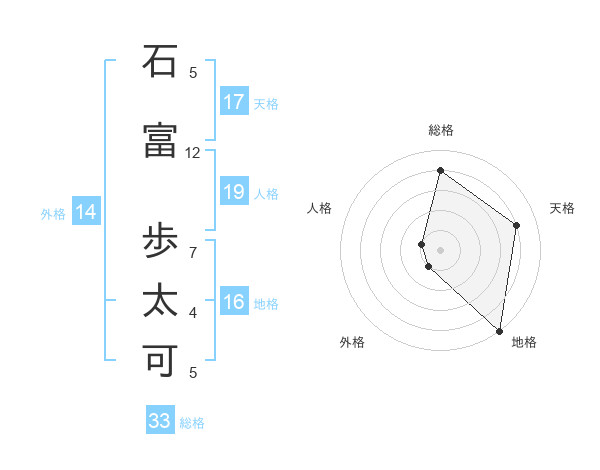 石富 歩太可さんを姓名の画数から五運を鑑定