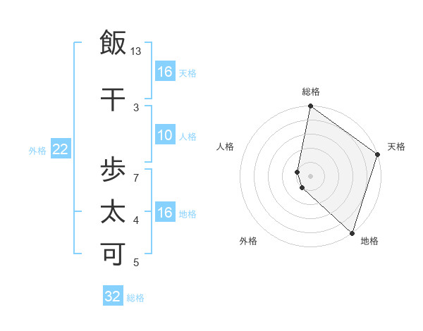 飯干 歩太可さんの総格は32画の5点!