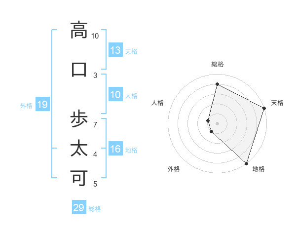 高口 歩太可さんを姓名の画数から五運を鑑定
