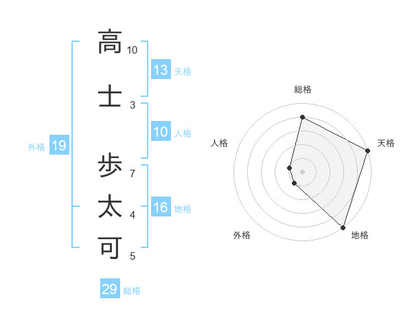 高士 歩太可さんの総格は29画の4点!